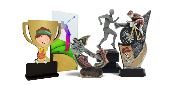 La categoría de Figuras ofrece trofeos individuales inspirados en cada deporte, con diseños que representan desde jugadores y equipamientos hasta elementos simbólicos como botas, raquetas o balones. Cada figura captura la esencia de la disciplina que representa, convirtiéndose en un premio original y lleno de carácter para reconocer el esfuerzo y la pasión deportiva.
